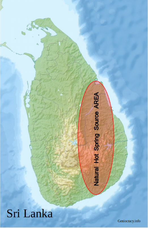 Sri Lanka has several hot springs (such as Nelumwewa and Kapurella) with outlet temperatures between 35 and 72°C. This suggests that there are potential reservoirs relatively close to the surface with temperatures varying between 140 and 150°C, and that temperatures of up to 350°C could be reached at a depth of 3 to 4 km.
